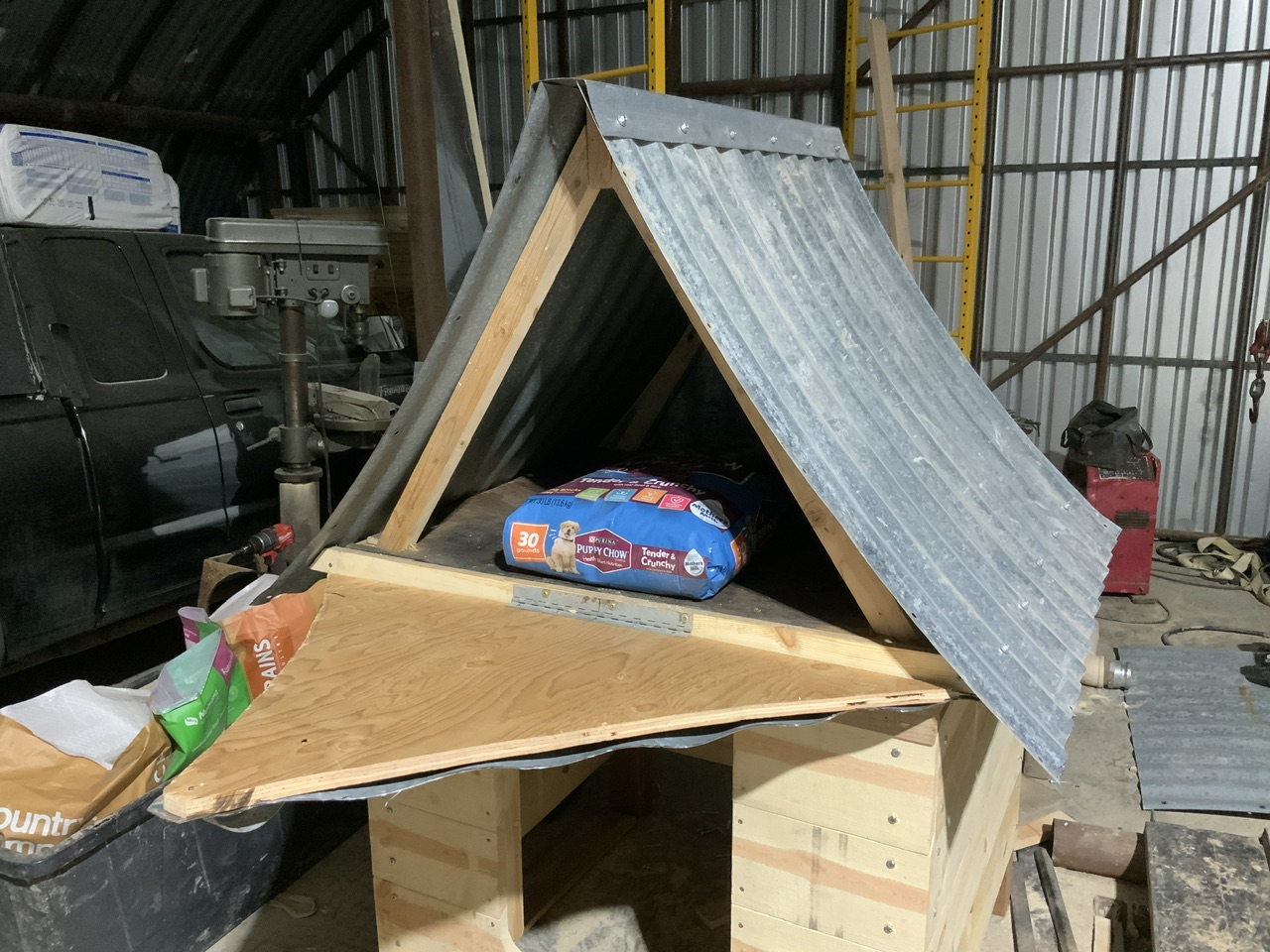 Well technically this one is doing it right now. Got a cat house I built in a emergency last year for incoming cat unexpectedly forced on us nice 4' x 4' x 4' and he stays in it as I am building his dog house.