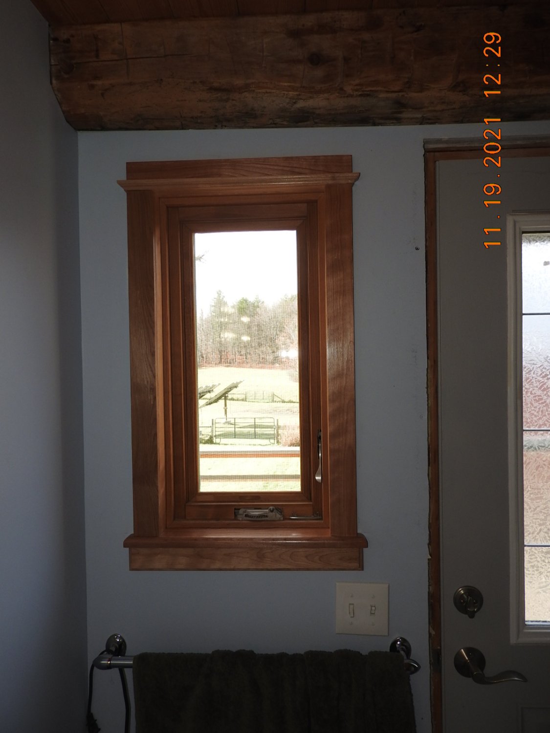 OK, in house project. Finally got around to trimming a window. Chose the hardest one, bathroom window. Took a lot of time, and a couple of remade pieces, the non rectangular ones of course. Bummer when the router skips.