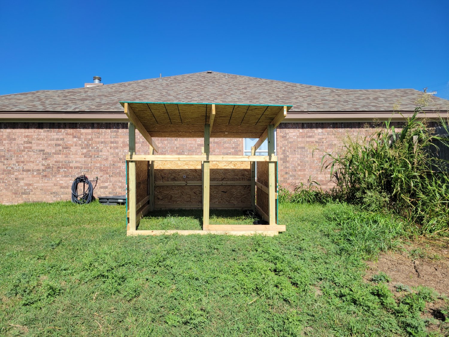 You could frame out the shelter in wood, like in @BarnOwl's picture and use the panels I suggested instead of the tin panels. The suggested panels will work well on the roof and sides and are lighter/easier to handle and cut.
