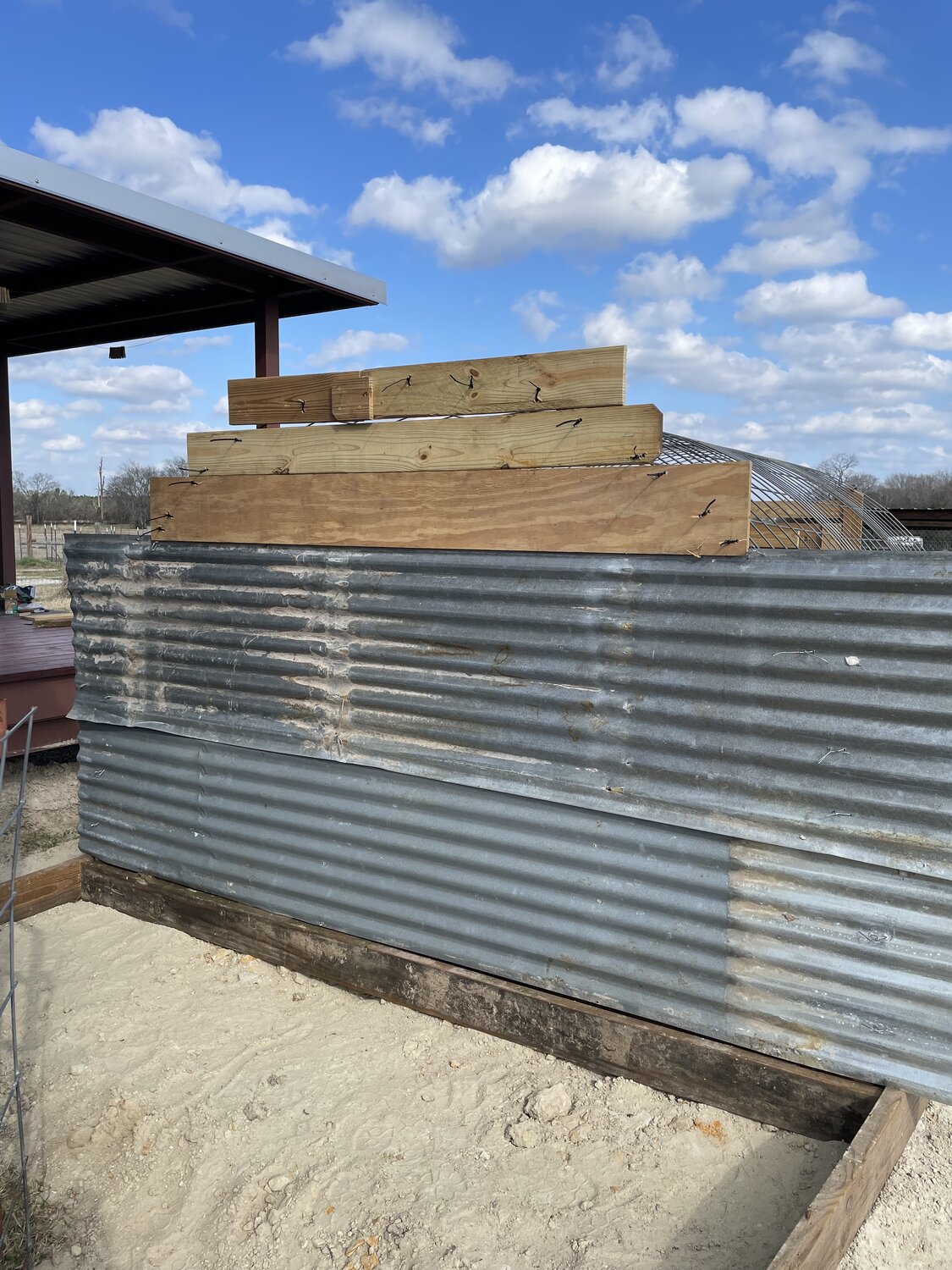 The tarp i got is short and won’t go from hardware cloth to hardware cloth. But I have a 10’ piece of tin that will cover the gap.