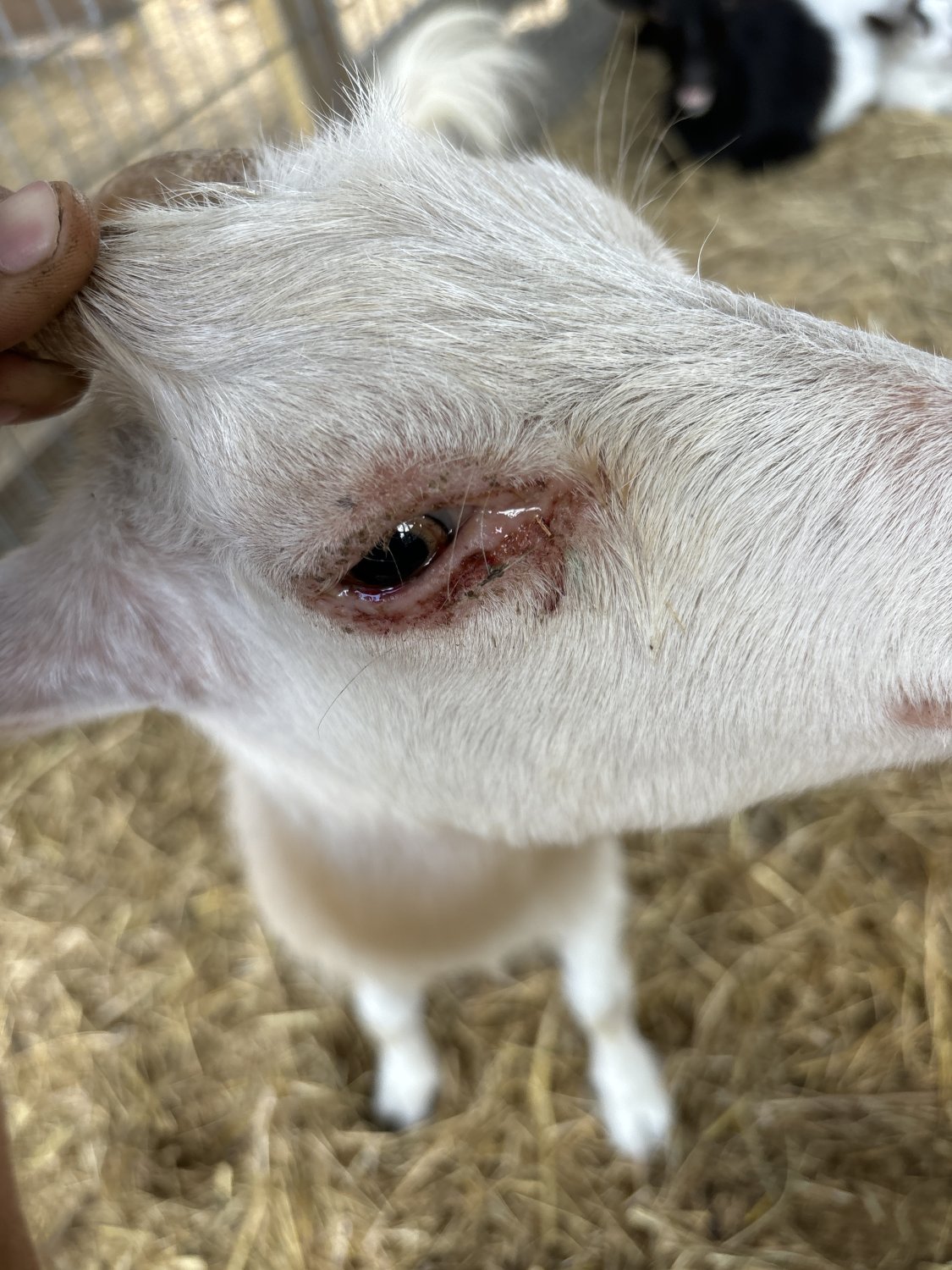 Our dwarf nigerian doe has had problems for a while, she has hair loss around the eyes, puss sometimes forms. and she also has really bad bumps on her chin. We have free choice baking soda and minerals. We have been using adam’s flea and tick and nu stock (she seems to rub it off after we put it on) and she has also been wormed recently by our vet. Anyone know what it might be?