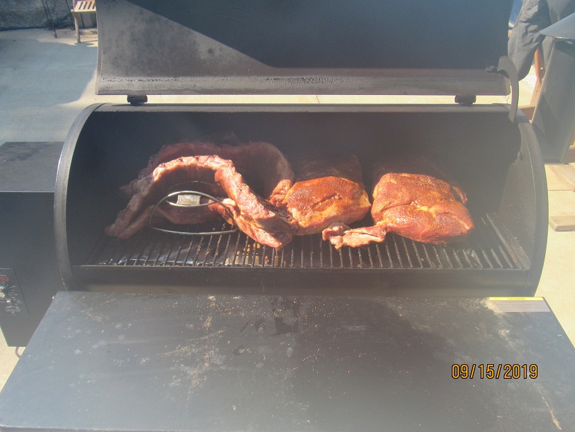We're having some neighbors over but I always fill the smoker up whenever I use it. We get a lot of made-ahead meals that we vacuum seal. I use the same amount of pellets whether I'm doing a shoulder or a bunch of meat.